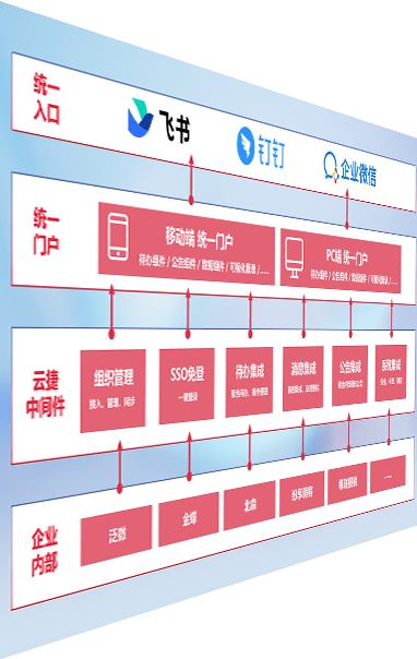 对协作平台提供支持服务,,,,支持企业应用与协作平台对接,,,,包含组织同步、、、、消息集成、、、待办集成等。。。。支持目前主流的协作平台:钉钉、、、、企微和飞书。。。。